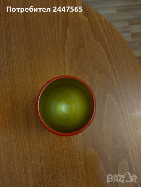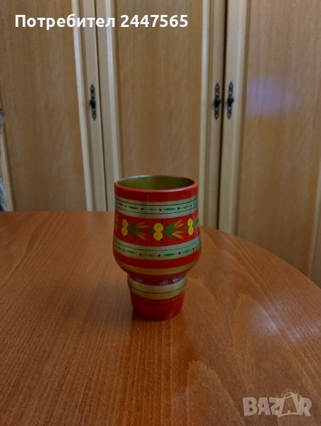 Ваза декоративна направена от дърво, ръчно рисувана и покрита с лак.Основен цвят червен, испълнена в руски традиционен стил . Височина 13 см, диаметър 7.5см.