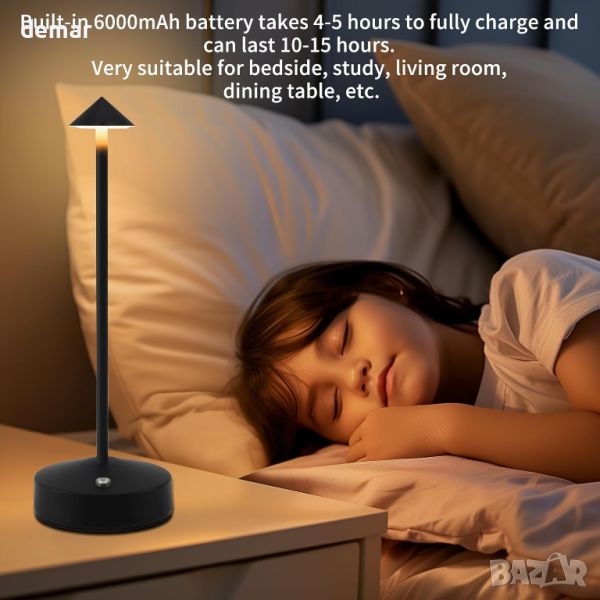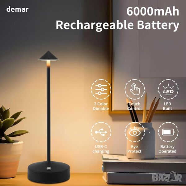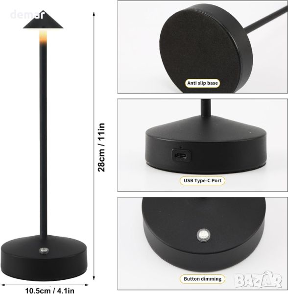 Акумулаторната LED настолна лампа разполага с вградена 6000mAh батерия, която се зарежда за 4-5 часа чрез USB-C кабел, осигурявайки 10-15 часа непрекъснато осветление. Безпроблемно контролирайте настройките на светлината със сензорен бутон, превключвайки между бяла, неутрална и топла светлина. Изработен от висококачествено желязо, той е с размери 4,1x11 инча за издръжливост и елегантен дизайн. Персонализирайте яркостта с безстепенно регулиране за оптимален комфорт. Идеален за нощни шкафчета, кабинети, всекидневни и трапезни маси, той предлага универсално осветление за всяко пространство. Включва лампата, USB-C кабел за зареждане и ръководство за потребителя.