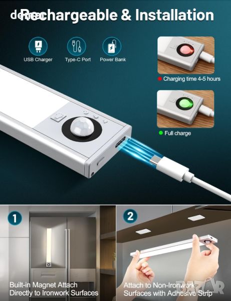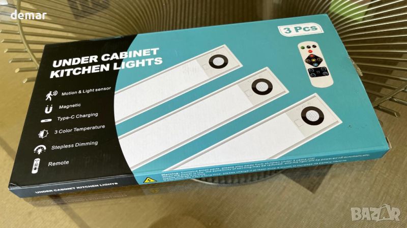 Гардеробни лампи, под шкафа, 3 броя 72 LED, сензор за движение, Type-C презареждащи се,дистанционно