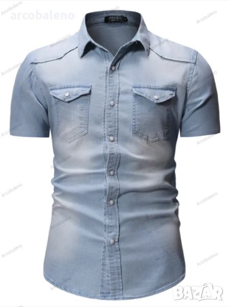 Тип облекло: Мъжка дънкова риза с къс ръкав