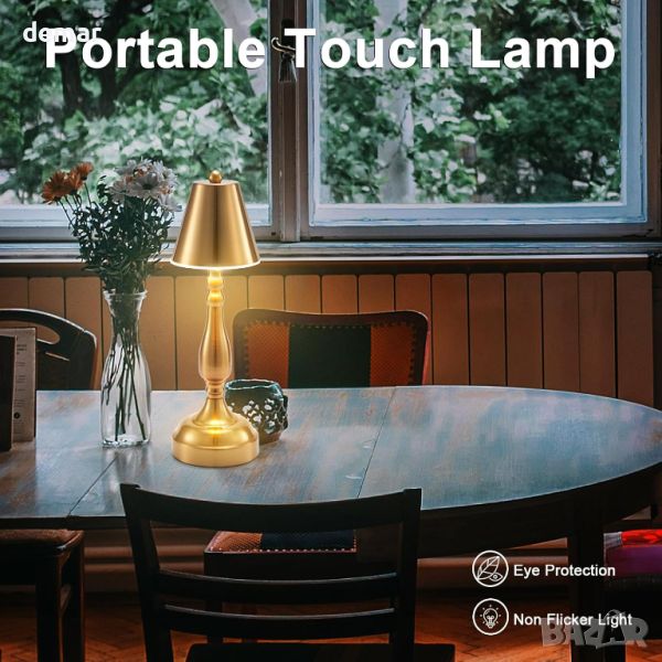 EGOBASIC Акумулаторна безжична LED настолна лампа с батерия, 3 цветна димируема, античен месинг