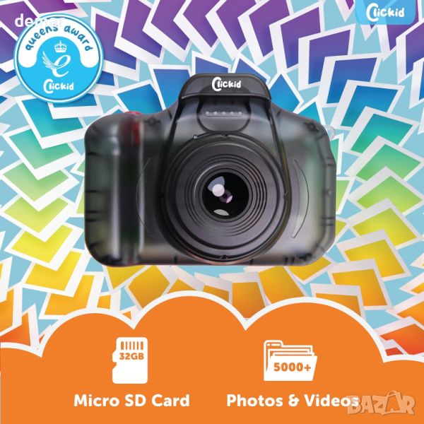 ClickKid CAM10 Детска цифрова камера, 8X увеличение 32GB micro SD карта, доп. батерия и калъф