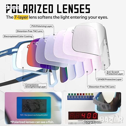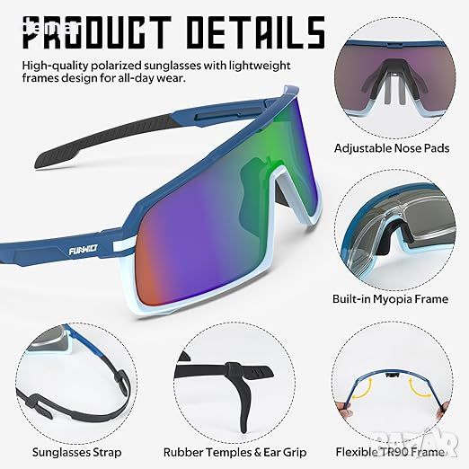 FUNWICT Поляризирани спортни слънчеви очила за бягане, колоездене, TR90 Frame UV400