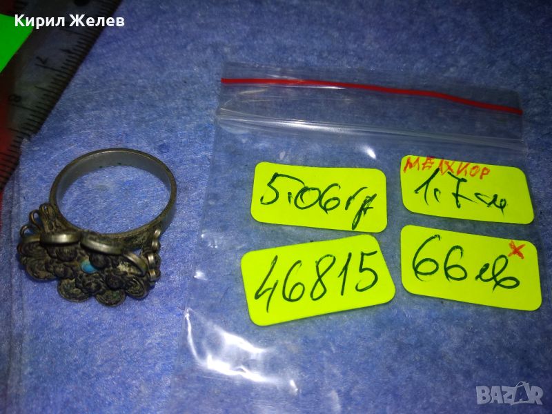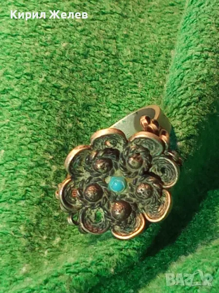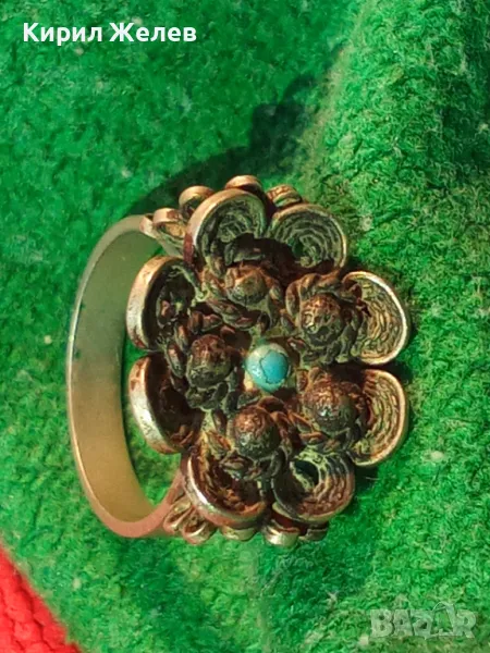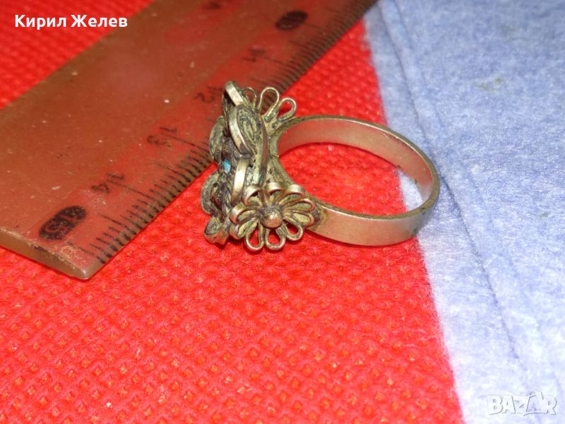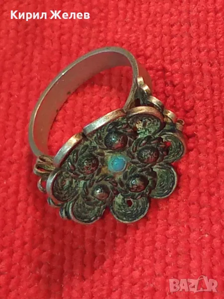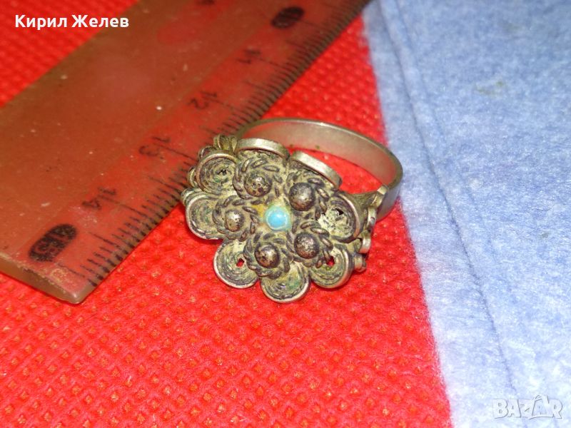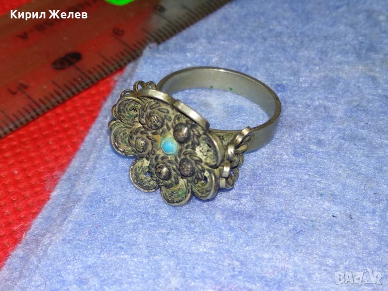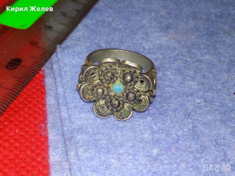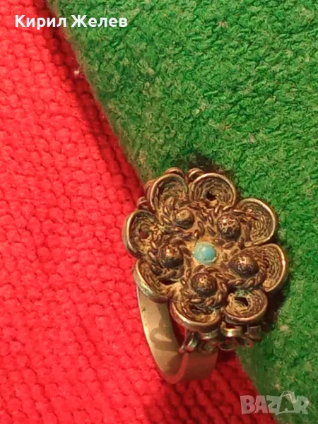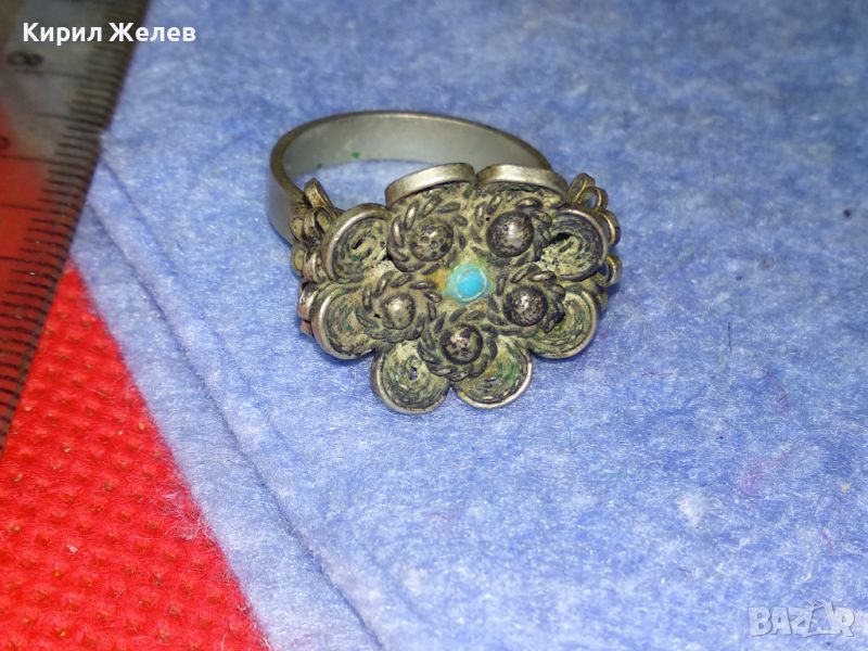 СТАРИНЕН ФЛОРАЛЕН ТЮРКОАЗЕН МЕЛХИОРЕН ПРЪСТЕН ФИЛИГРАННА МАЙСТОРСКА РЪЧНА ИЗРАБОТКА 46815
