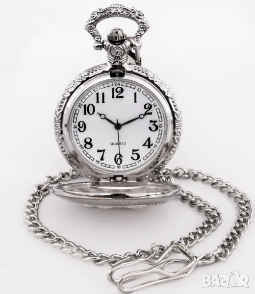 Сребриста стоманена верижка за джобен часовник. Мъжки накит (