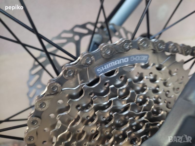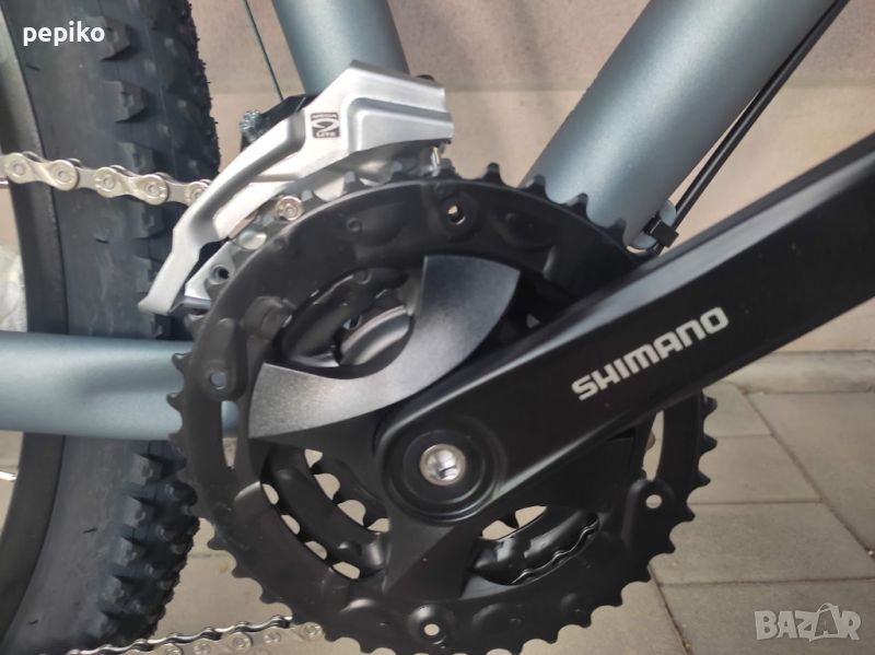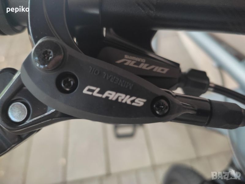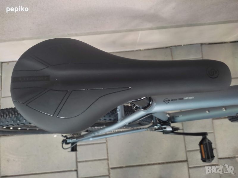 НОВ алуминиев мтв велосипед GRX CROSS GRX 29 цола,олекотена алуминиева рамка от хидроформовани тръби 29 цола с 27 скорости,фиксирани палцови команди SHIMANO ALIVIO 3 X 9,средно движение SHIMANO касета,алуминиеви курбели SHIMANO ,пластмасови педали,преден отклонител SHIMANO ALIVIO,заден отклонител SHIMANO ALIVIO,задни венци касета на шлици SHIMANO CS-HG201-9,предна и задна алуминиеви главини с автомати за бърз монтаж и демонтаж SHIMANO,алуминиево колче на седалката ZOOM,спортна седалка на релси SELLE ASSANO,алуминиево кормило,алуминиева лапа на кормилото,преден алуминиев амортисьор регулиращ се 100 мм.ход SR SUNTOUR XCT,предна и задна хидравлични дискови спирачки CLARKS,алуминиеви двойностенни усилени капли на капси,гуми със спортен грайфер КЕНДА 29 х 2,2,черни емайлирани спици,размер на рамката XXL 56 х 64см.тегло 16,9кг.подходящ за високи хора 185--2 метра
