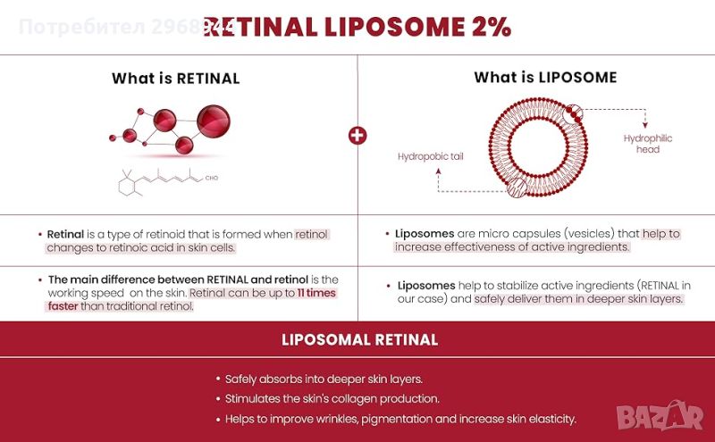 ЛИПОЗОМЕН РЕТИНАЛ 2% - помага за предотвратяване на признаци на стареене, като фини линии, бръчки и неравномерен тен и текстура на кожата. - помага за намаляване на производството на мазнини, като по този начин намалява появата на акне.