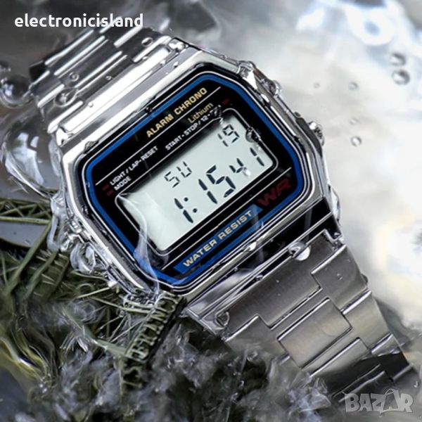 Ръчен ретро винтидж цифров часовник F-91w с каишка от неръждаема стомана