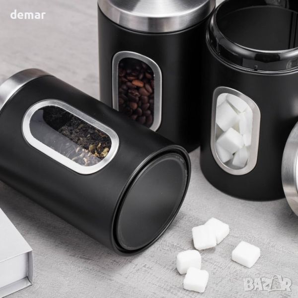 Simcat Комплект 3 бр. кухненски кутии, неръждаема стомана, с прозорче за гледане, сребристо
