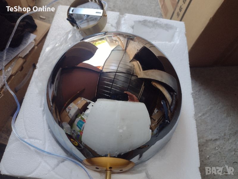 Пандел висяща таванна ЛЕД лампа с огледална топка лукс колекция хром
