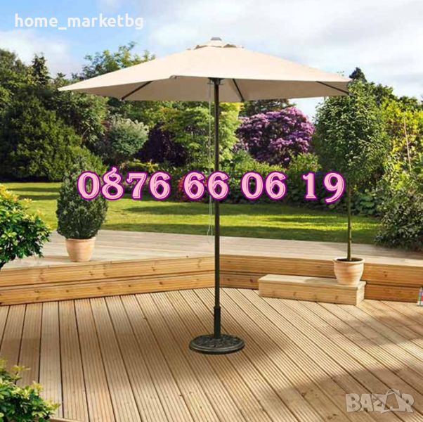 Градински чадър с диаметър 2,7 м, с механизъм за отваряне и затваряне
