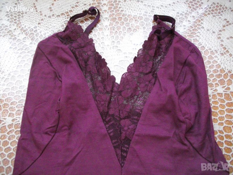Дамско боди цвят лилав, номер "S", от памук и дантела.