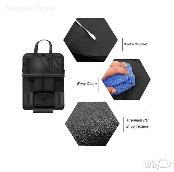 Органайзер за седалка Mercado Trade, Еко кожа, Сгъваема маса, Черен.