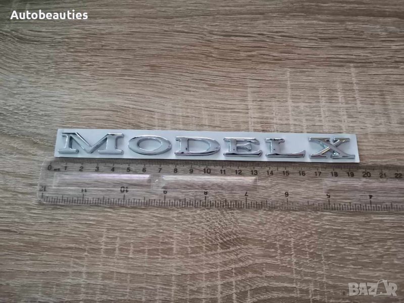 нов надпис за модела X на Tesla/Тесла в сребрист гланц. Размерите са дадени на снимките.