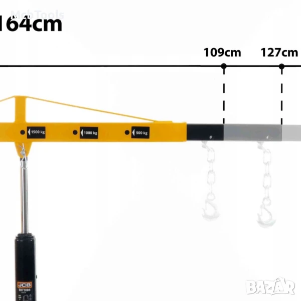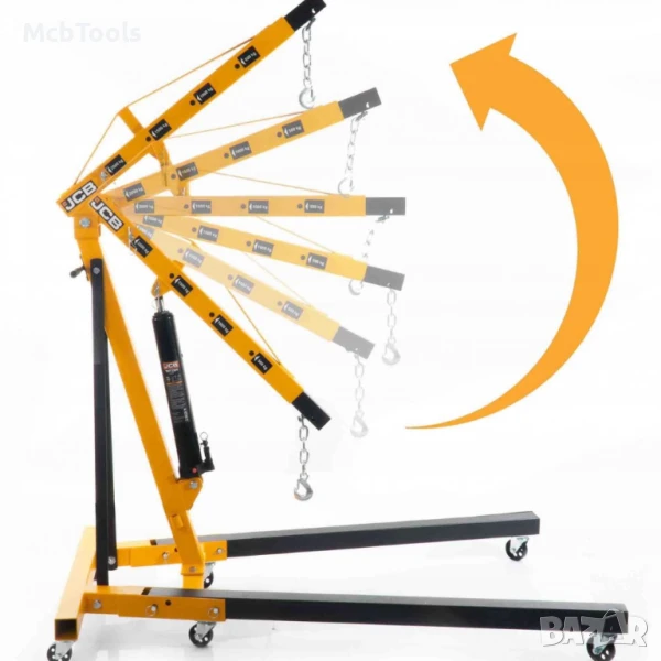 Кран за двигатели тип ''Жираф'' JCB е с товароносимост 2000 кг. Използва се за демонтиране и монтаж на различни големи двигатели, мотори, трансмисии. Има идеално позициониран лост за задействане на повдигащия хидравличен цилиндър, позволяващ управление на крана само от един оператор. Има здрава конструкция.