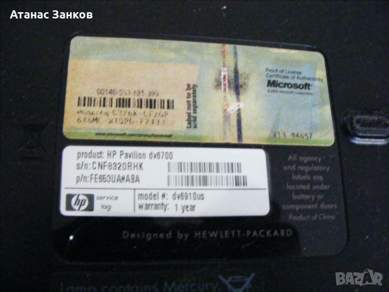 Лаптоп за части HP Pavilion Dv6000 номер 3 → Обява 46453980