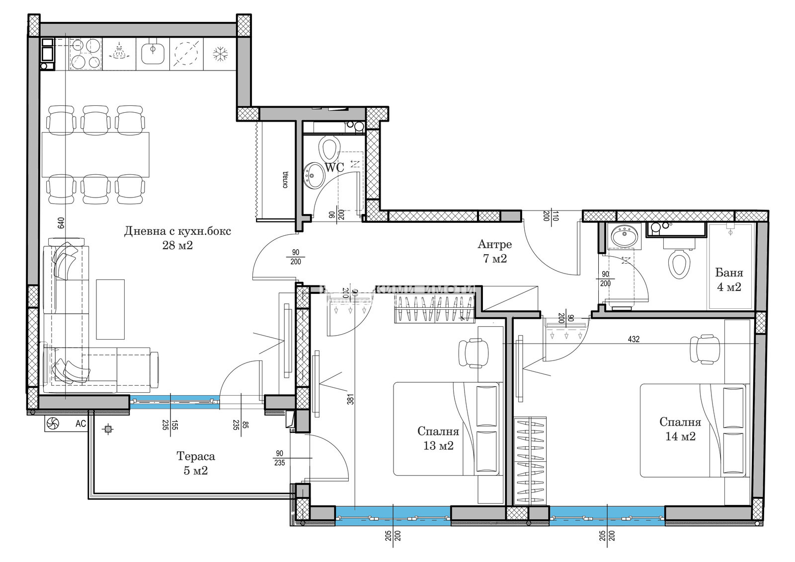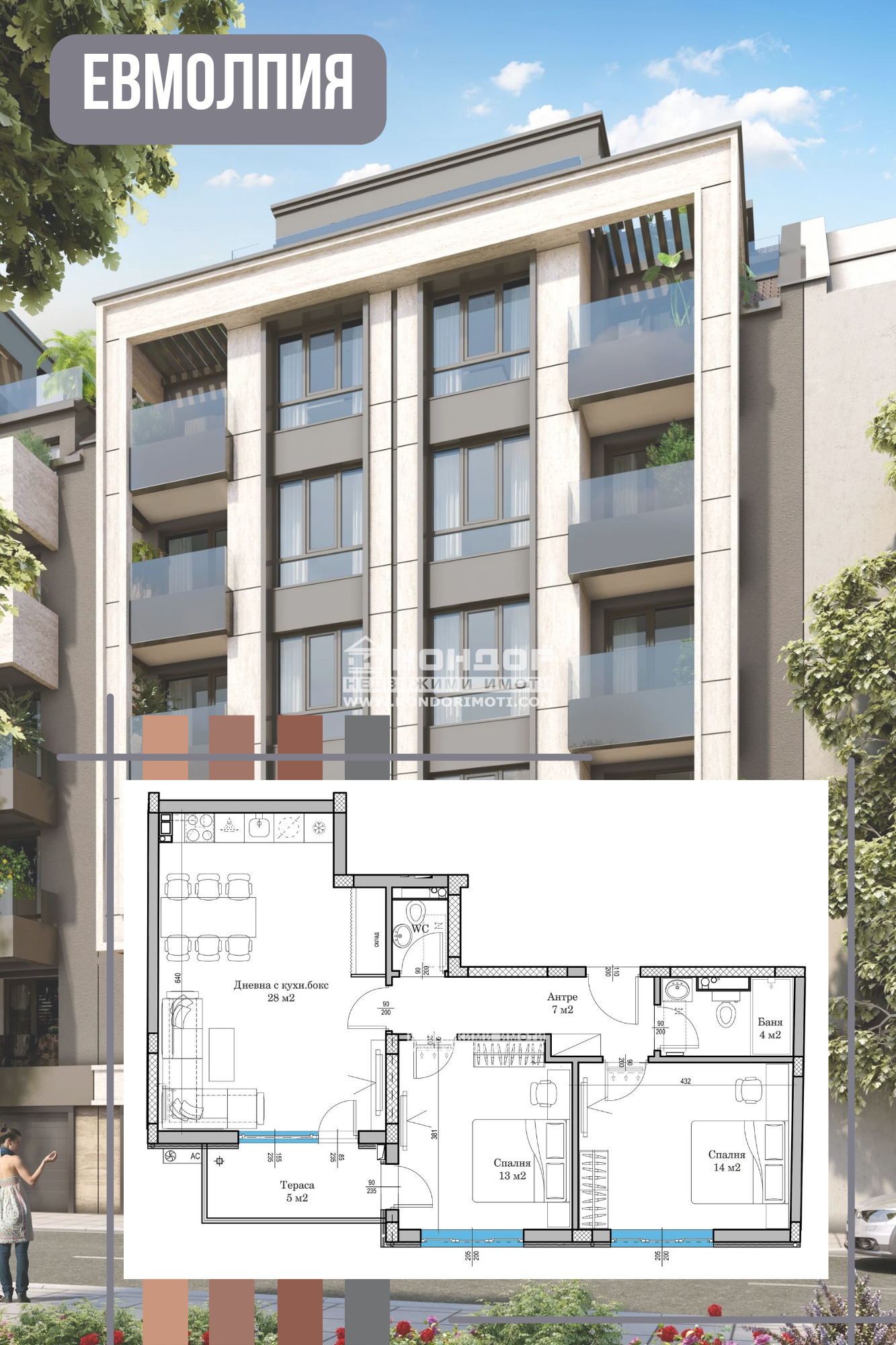 Оферта 64516: МАЛКА ЛУКСОЗНА СГРАДА !!! СТРАХОТНА ЛОКАЦИЯ !!! Имаме удоволствието да ви предложим новоизградена сграда в близост до Евмолпия и търговски център Гранд !!! Малка бутикова сграда в един от най-предпочитаните райони на централна градска част. Жилището се състои от широко антре, просторен хол с кухненски бокс , две самостоятелни спални, баня с тоалетна, отделна тоалетна, тераса и склад. Строителството е изпълнено по всички европейски изисквания за качество: под - замазка, стени шпакловка, ВиК до тапа, Ел. инсталация до ключ, пълно окабеляване, масивна входна блиндирана врата, алуминиева дограма . Луксозно завършване на общи части. Проблемът с паркирането е решен с партерни и подземни Гаражи и Паркоместа във вътрешния двор и в подземието. Предпочитан район поради бързия достъп до главната пешеходна улица на града, множеството детски градини, университети, паркови среди и зелени зони, както и бърз излаз на централни възлови булеварди. Разсрочено плащане в рамките на строителството.