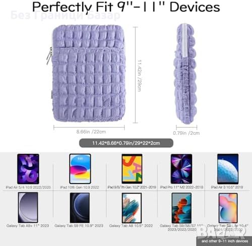 Съвместимост: Подходящ за iPad Air 5/4 10.9", iPad 10th Gen. 10.9, iPad 9/8/7th Gen. 10.2", iPad Pro 11, Galaxy Tab A9+ 11", Galaxy Tab S9 FE 10.9", Galaxy Tab A8 10.5", Galaxy Tab S9/S8/S7 11", Galaxy Tab S6 Lite 10.4", Tab M10 Plus 10.6" и други 9-11 инчови устройства.