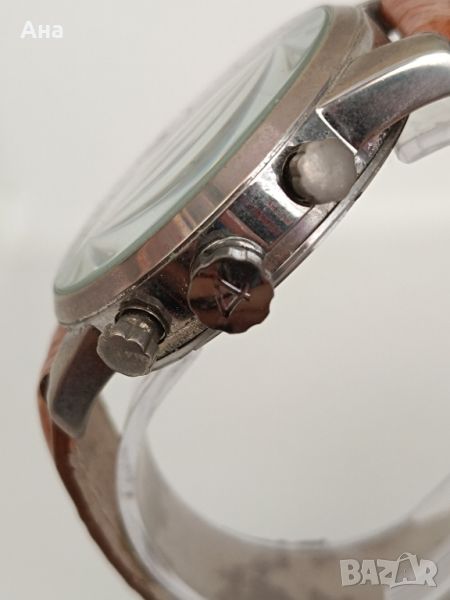 Часовника е от неръждаема стомана диаметър 44 мм Работи отлично .Каишката му е леко захабана ,часовника е в много добро състояние .датата не работи