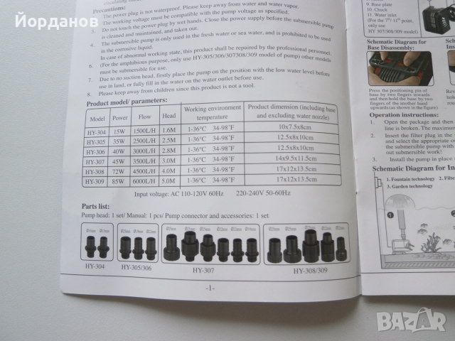 Нова потопяема водна помпа HY-308 72W.В комплект с аксесоари и книжка.Цената не се коментира.