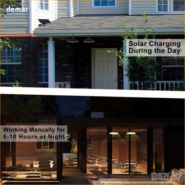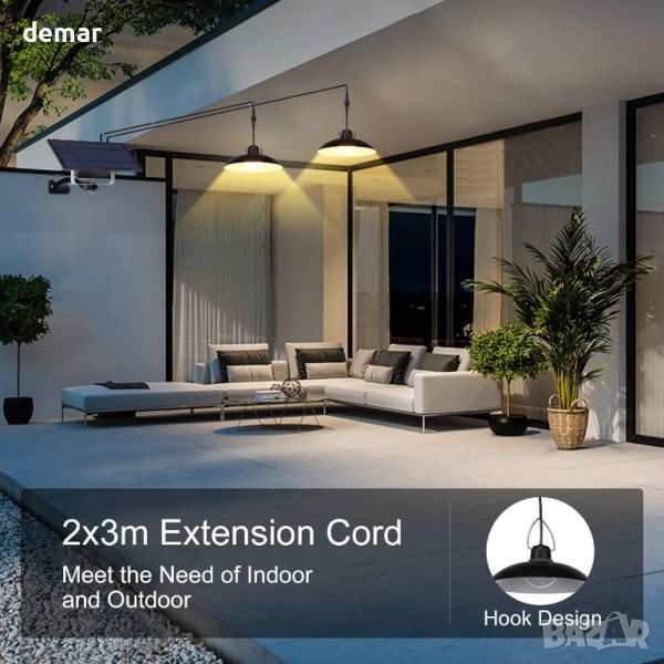 Тази компактна соларна лампа може да се управлява ръчно или автоматично чрез IR дистанционно, като предлага 3 режима на яркост (100%, 50%, 20%) и 3 настройки на таймера (3, 5, 8 часа). Слънчевият панел с размери 19,7 x 11,7 cm зарежда батерия от 2200 mAh в рамките на 5 часа, за да захранва светлината до 18 часа. Проектиран за външна и домашна употреба, лампата има 15 cm абажур, излъчва топла бяла светлина при 3500K и разполага с 3-метров кабел с IP65 водоустойчиви конектори. Лесен за инсталиране с регулируем монтаж, той е идеален за градини, вътрешни дворове, кухни и др. Пакетът включва 2 соларни лампи, соларен панел, удължителни кабели, винтове, скоба, ръководство и 2 дистанционни.