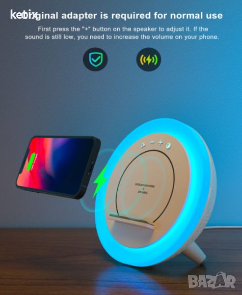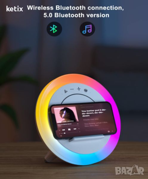 - ❤ 【3-в-1 Многофункционален Bluetooth високоговорител】: Нашият високоговорител съчетава Bluetooth възможности с нощна светлина, безжична станция за зареждане и държач за телефон. С лесните за използване бутони можете да контролирате силата на звука, да превключвате между песни, да отговаряте на повиквания и да избирате любимия си светлинен режим. Гладката повърхност и висококачествените безжични LED високоговорители украсяват атмосферата на стаята, създавайки цветна музикална фантазия. (Забележка: Използвайте предоставения адаптер, за да стартирате нормално).
