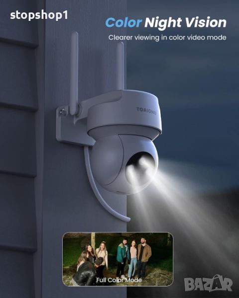 - 【Супер цветно нощно виждане】 Camara de seguridad para casa има две цветни конфигурации за нощно виждане. Когато включите функцията "цветна нощ" на режима за нощно виждане, можете да получавате цветни изображения и видеоклипове през целия ден. Когато включите само „звукова и визуална аларма“ в настройката на алармата, охранителната камера на открито ще заснема само цветни изображения за нощно виждане, когато алармата е подадена. Следователно wifi камерата може да заснеме повече детайли през нощта.