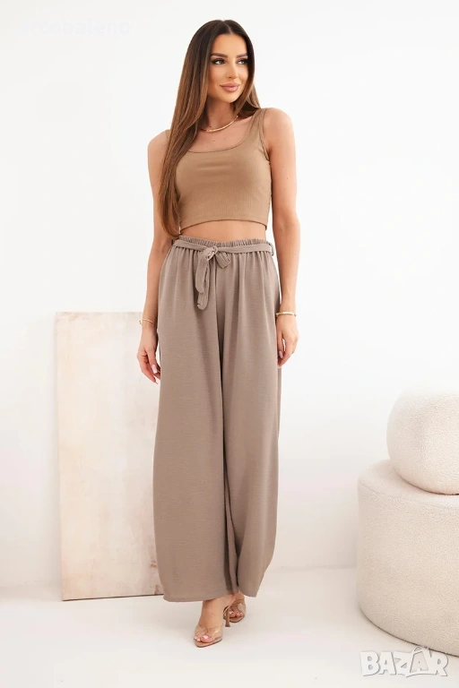 Панталоните с широки крачоли и връзка на талията са модерен и удобен избор за много поводи. Широките крачоли придават свобода и лекота на целия стайлинг, а връзката на талията ви позволява да коригирате панталона според индивидуалните си предпочитания. Те са идеални за летни разходки, ежедневни срещи или вечерни излизания, добавят модерен акцент към вашия стил и са удобни за носене. Тези панталони бързо ще се превърнат в незаменим елемент от вашия гардероб, съчетавайки функционалност и стил. Размерът е универсален и ще бъде подходящ за жени, носещи размер S, M или L.