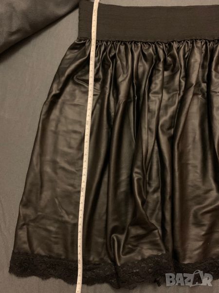 Кожена пола с дантела в края. В кръста е с ластик. Подходяща е за ХС или С размер.