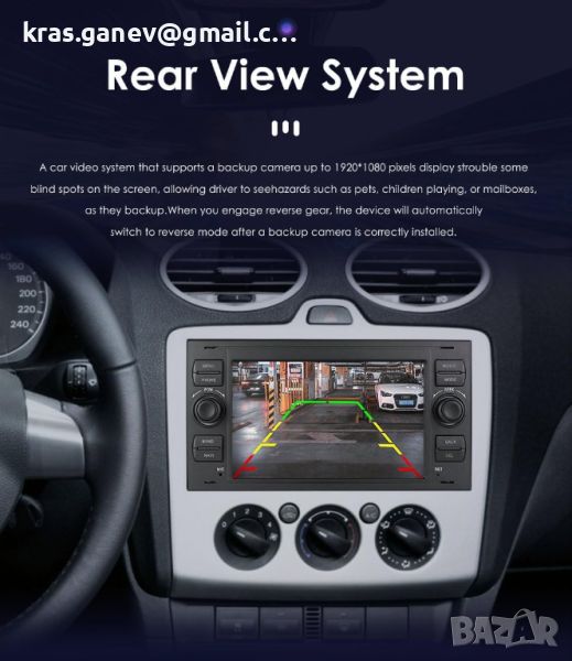 Вход за камера за задно виждане: Тази видео система за кола, която поддържа AHD/HD резервна камера, показва досадни слепи зони на монитор, така че можете да видите опасности като домашни любимци, детски игри или пощенски кутии, тъй като те са зад колата ви. Когато включите задна предавка, модулът на панела автоматично се предава на интерфейса за заден ход.