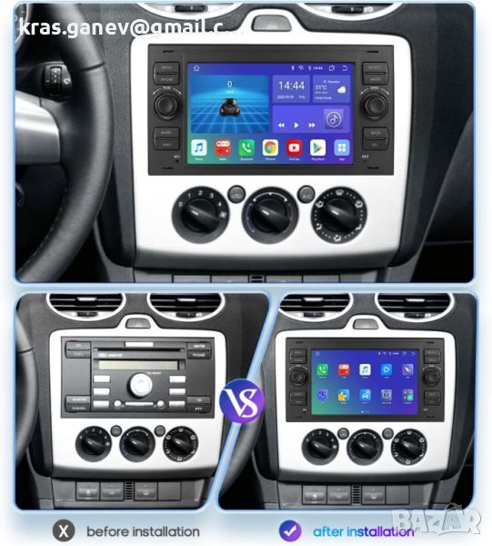 Приложими модели: Това радио за кола пасва на Ford C-Max 2005-2007, Ford Connect 2007-2009, Ford Fiesta 2005-2007, Ford Fusion 2006-2011, Ford Galaxy 2006-2008, Ford Kuga 2008-2012, Ford Mondeo 2008-2012 . 03 -2 007, Ford S-Max 2006-2011, Ford Transit 2005-2011, Ford Focus 2005-2007 ЗАБЕЛЕЖКА: Това устройство не поддържа декодиране на информация за управление на климатика, не поддържа оригинално гласово управление и функция на сензор за заден ход и оригиналната функция за синхронизиране.