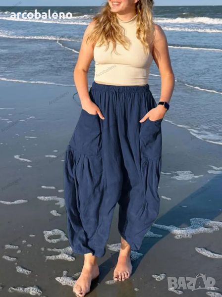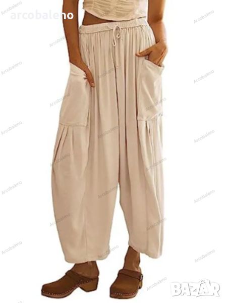 Дамски свободни ежедневни плисирани панталони с широки крачоли и еластична талия