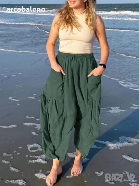 Дамски плисирани панталони с широки крачоли и еластична талия, 11цвята