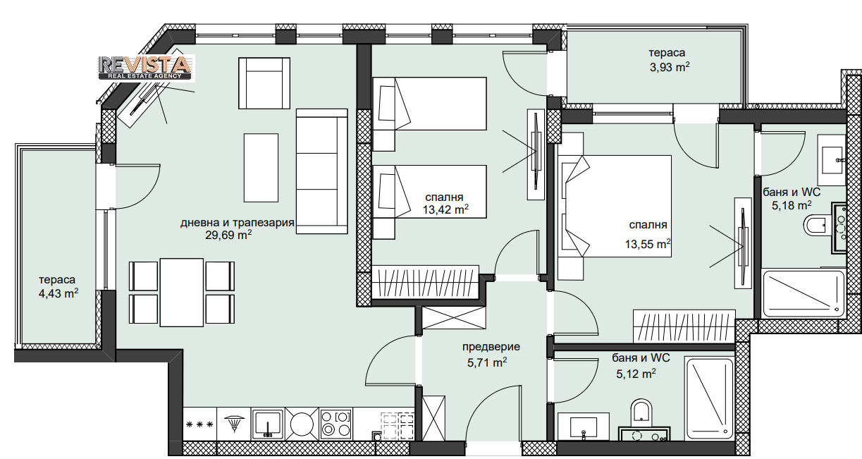 Агенция РЕВИСТА - ДИРЕКТНИ ПРОДАЖБИ на двустайни, тристайни апартаменти и студиа с функционални разпределения, Луксозно завършени общи части - с висококачествени материали и неповторим дизайн.