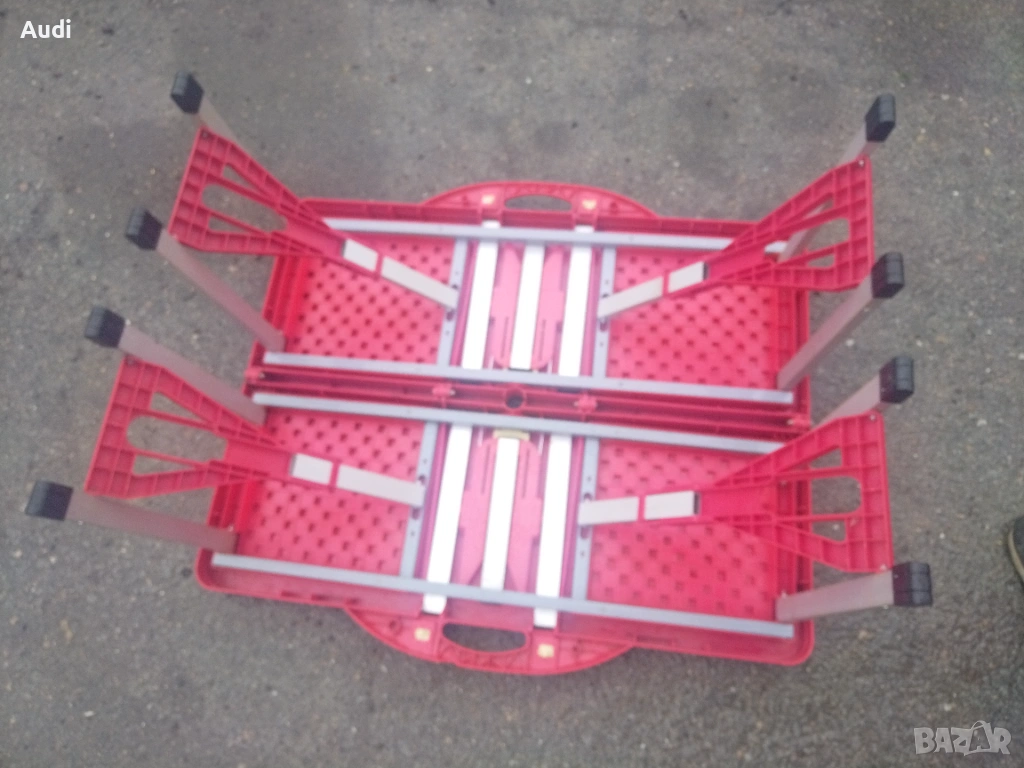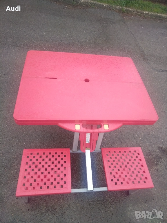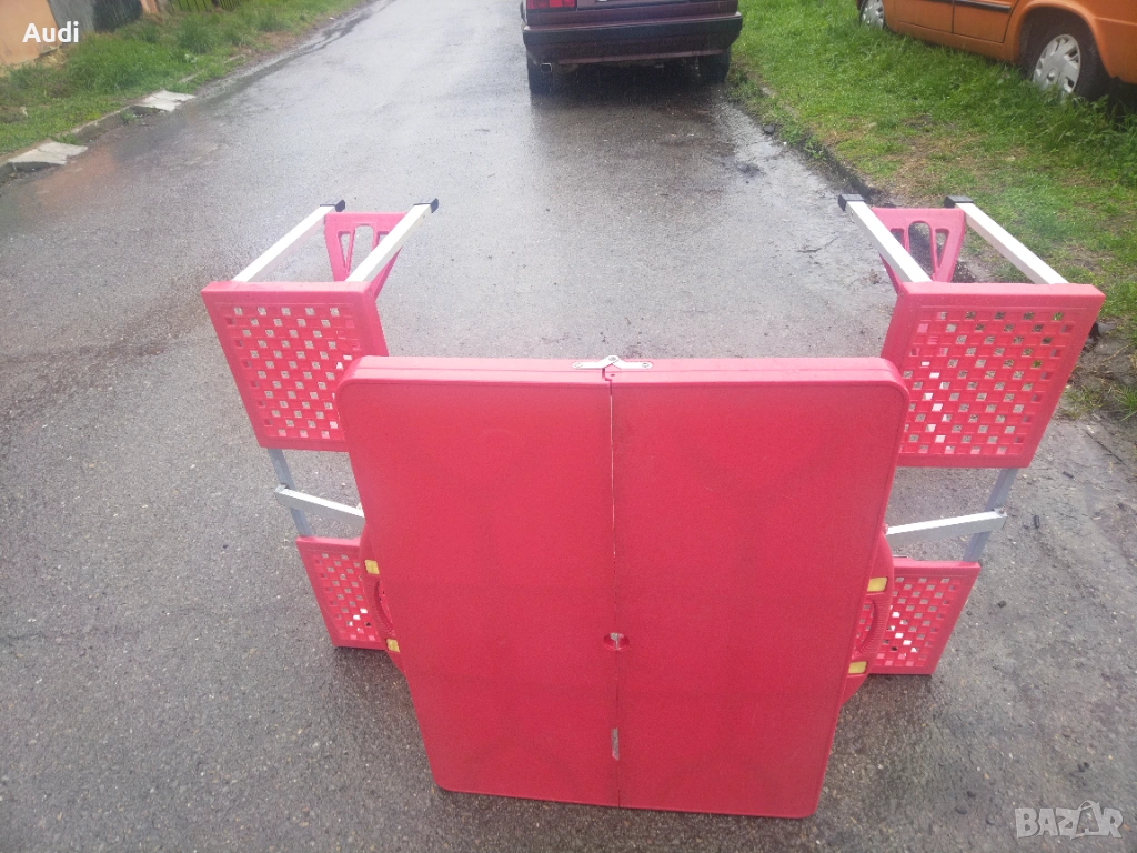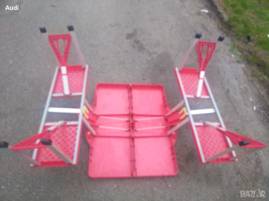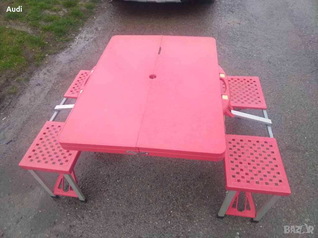 Сгъваема маса със столове за къмпинг, идеаллна за дворове, градини, пикници и др. Сгъва се във фор