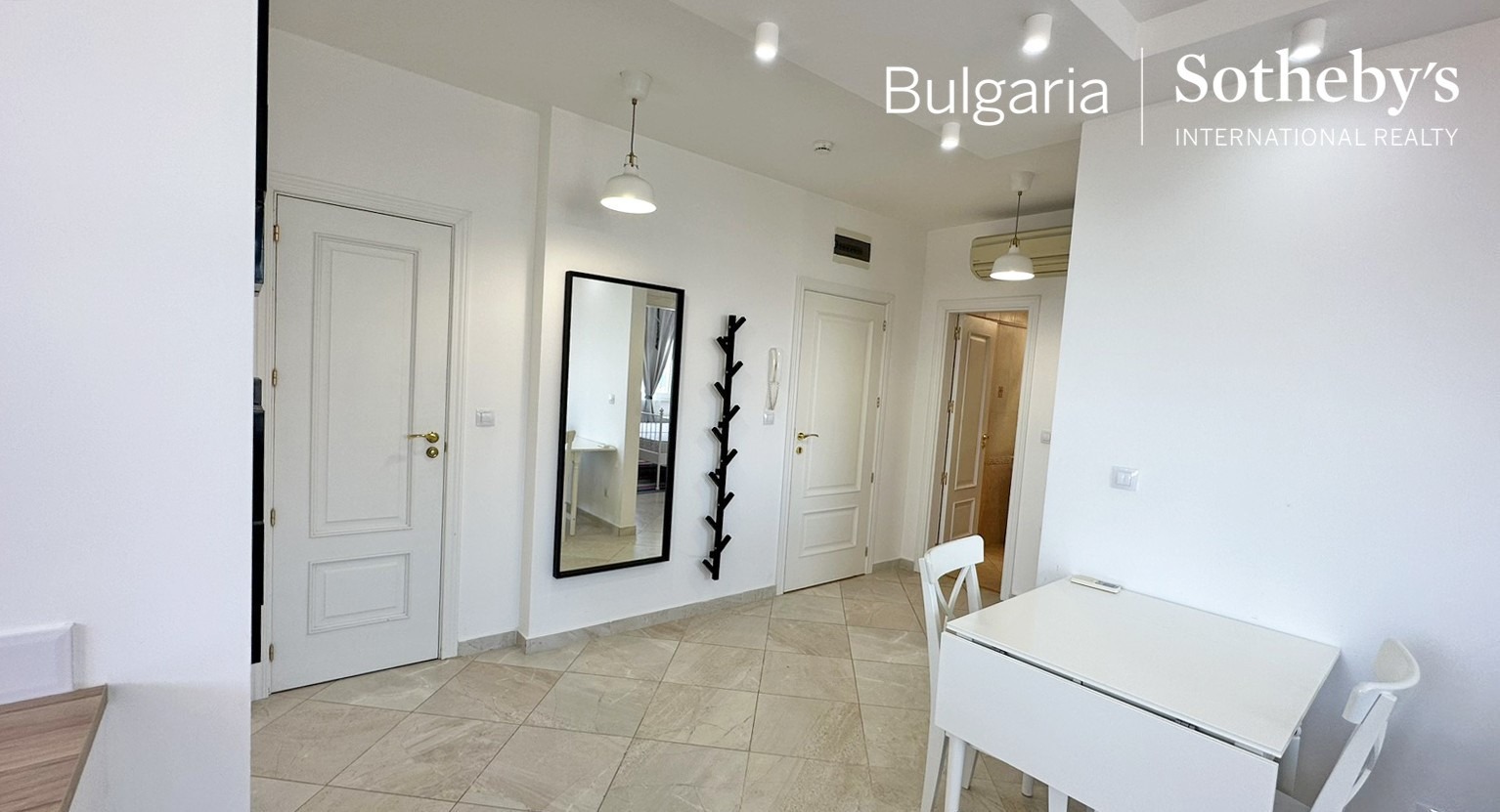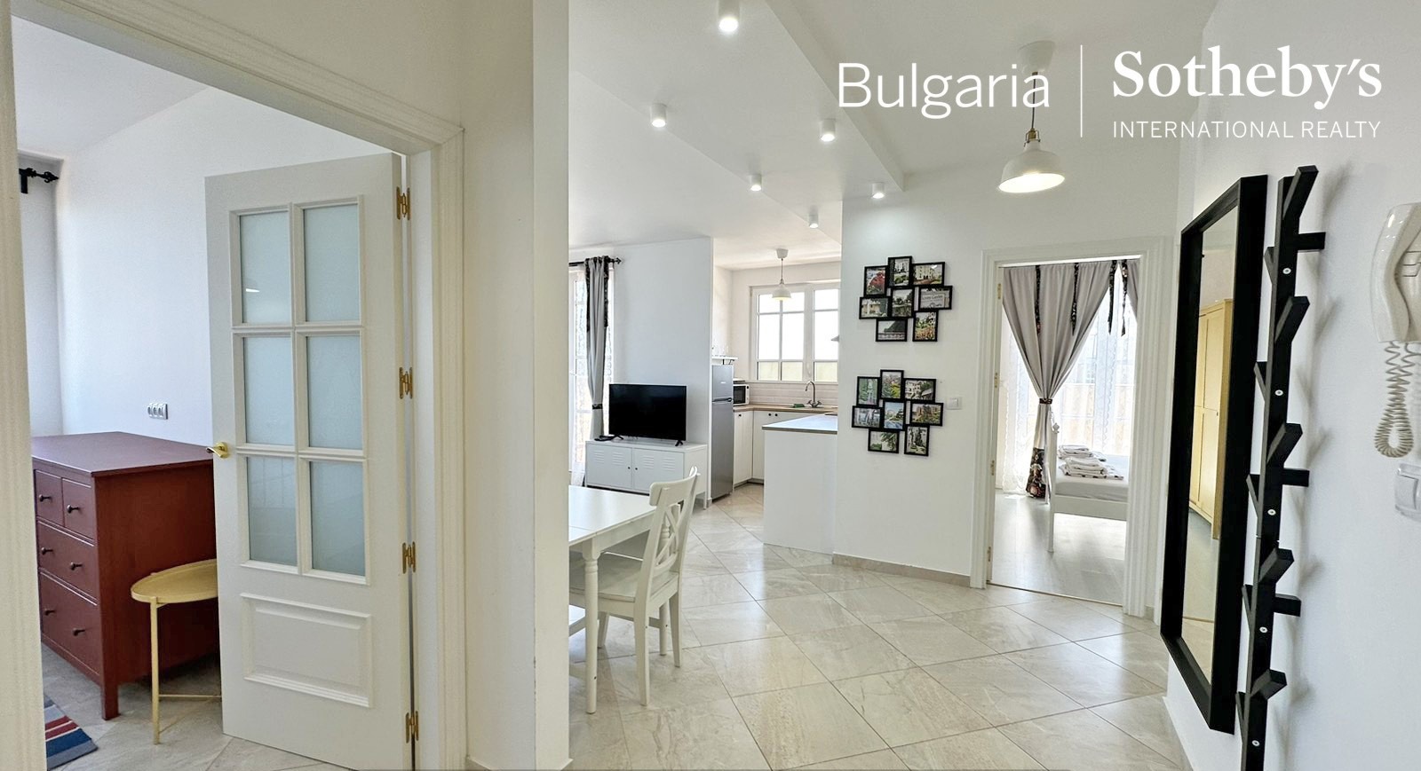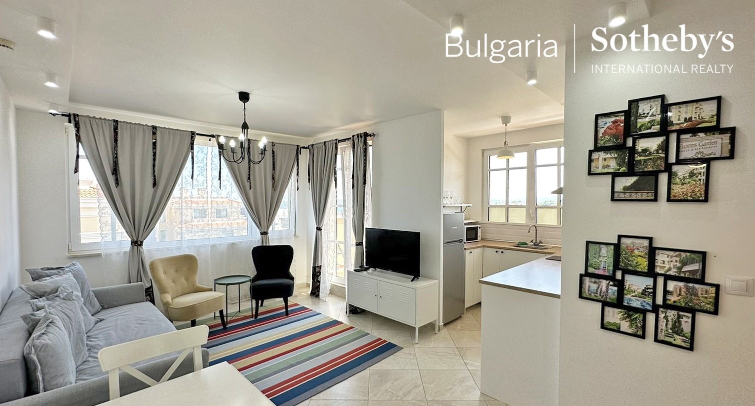 BULGARIA SOTHEBY S INTERNATIONAL REALTY представя на Вашето внимание чудесен, напълно обзаведен морски имот с две спални, разположен в предпочитан комплекс от затворен тип в гр.Черноморец.