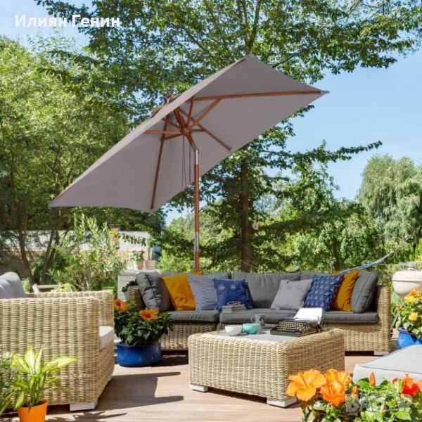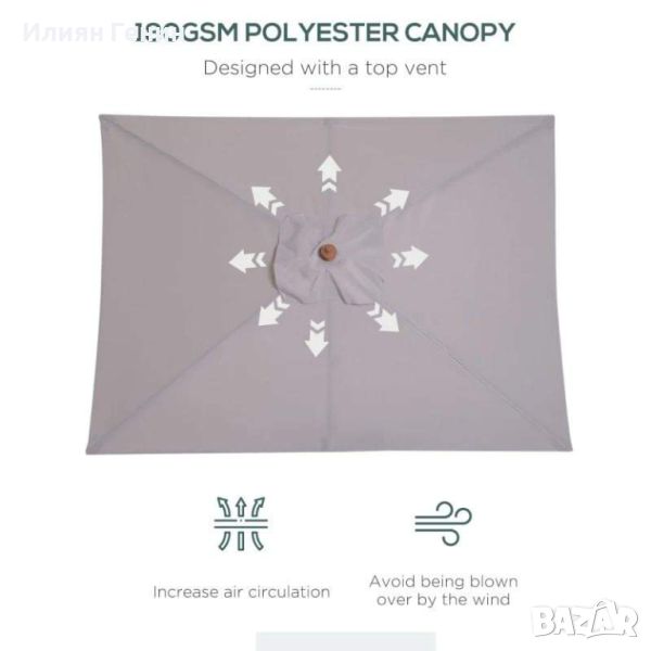 Голям и стилен чадър: Този слънчев чадър е красиво допълнение към вашата градина и външни площи, предпазвайки ви от яркото слънце.