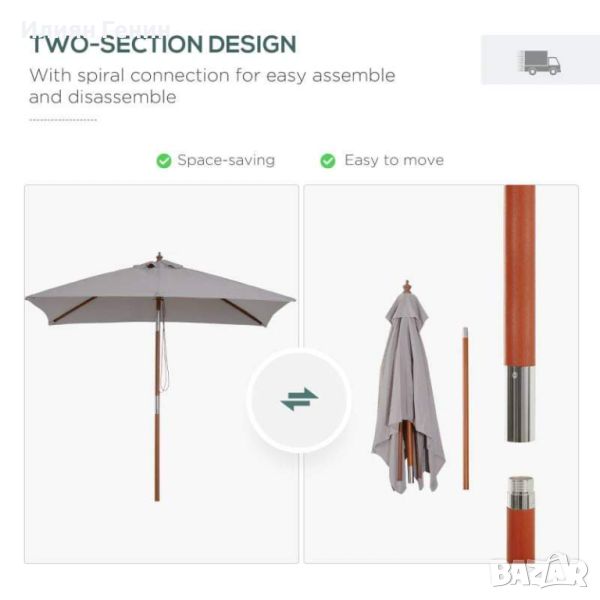 Outsunny 2m x 1,5m градински чадър-чадър с накланящ се сенник - 90.00лв.