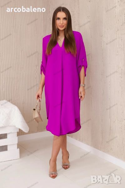 Роклята с V-образно деколте е класически и елегантен избор, който подчертава шията и деколтето, придавайки на силуета тънък и елегантен вид. Този универсален стил на обличане работи перфектно при много различни обстоятелства, от по-официални събития до случайни срещи. Благодарение на своята гъвкавост, роклята с V-образно деколте е чудесен избор за жени с всякаква фигура и стил. Може да се носи с обувки на ток за вечерни излизания, с балетки за ежедневни срещи и дори с дънково яке за по-ежедневни поводи. Не без причина роклите с V-образно деколте се считат за класически, защото подчертават предимствата на фигурата, като същевременно добавят елегантност и женственост към всеки стил. Размерът е универсален и ще бъде подходящ за жени, носещи размер S, M или L.