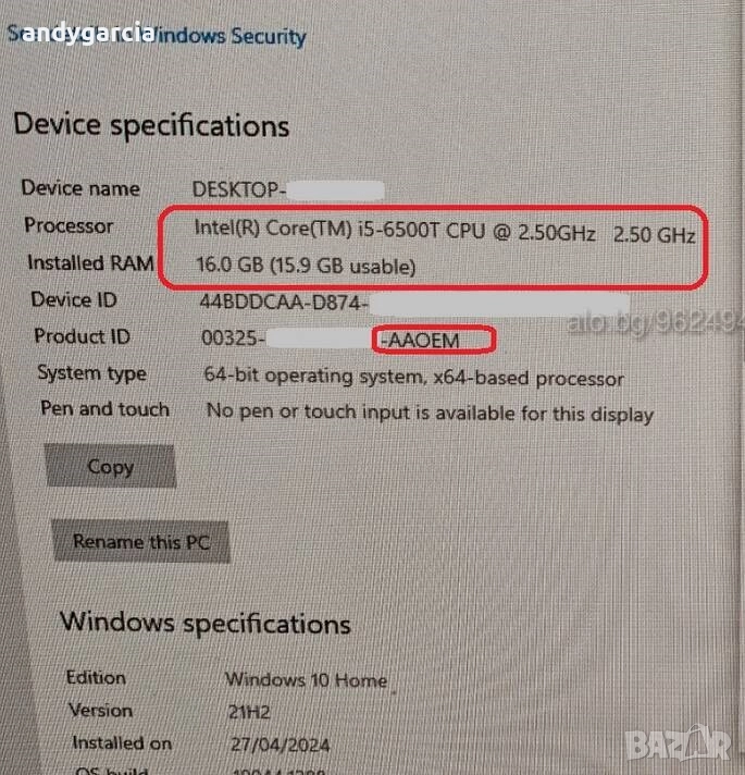 Процесор: I5-6500T (4 ядра / 4 нишки)