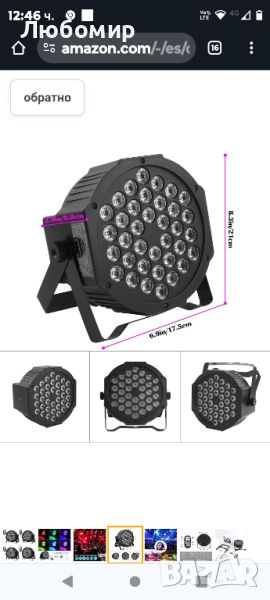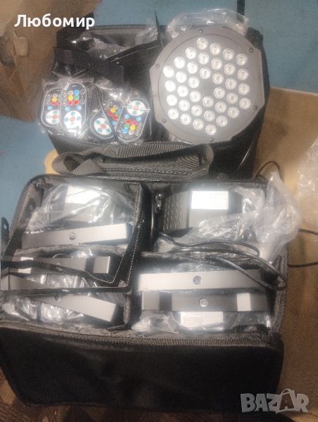 Налични два комплекта.Светлината Par използва 36 светодиода и 7 режима на светлинни ефекти, които са по-цветни.