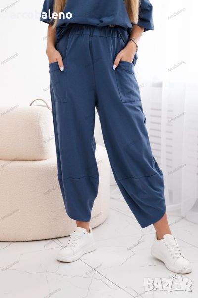 Италианският комплект е съчетание от елегантност и комфорт, който идеално подхожда на много поводи. Тази материя е не само мека и приятна на допир, но и изглежда красива. Блузата е перфектна дреха както за всеки ден, така и за специални поводи. Можете да го носите самостоятелно или да го комбинирате с друга дреха, създавайки изключително стилен тоалет. Панталоните са перфектното допълнение към комплекта. Свободната им кройка позволява свобода на движение, което ги прави не само стилни, но и много удобни. При избора на панталон вие избирате комфорт и елегантност в едно. Италианският комплект е отличен избор за тези, които ценят високото качество и уникалния стил. Независимо дали отивате на среща с приятели, на работа или вечерно излизане, този комплект със сигурност ще ви накара да се откроите от тълпата. Размерът е универсален и става за жени, носещи размер S, M или L.