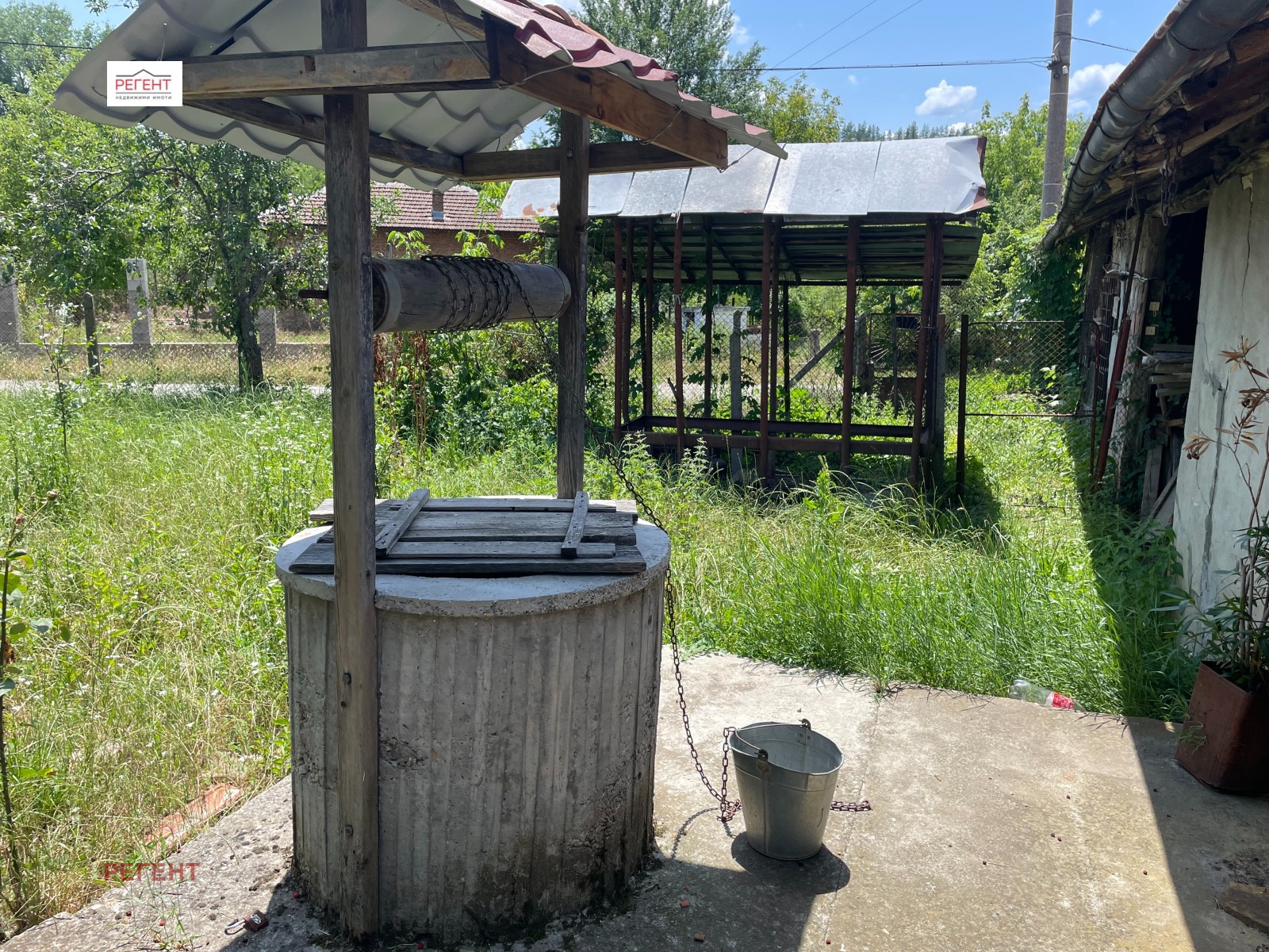 Двора е с площ от 600 кв.м., равен и много слънчев. Има кладенец, изградена лятна кухня и стопански постройки.