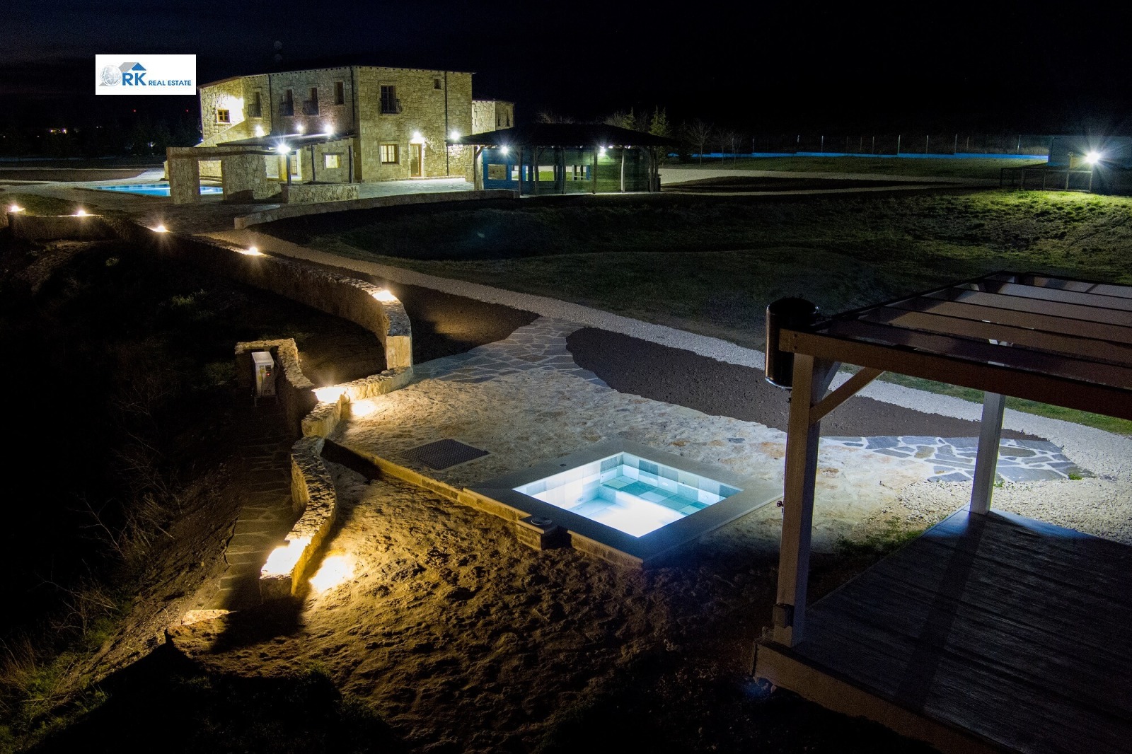 ИМЕНИЕТО Е СЪГРАДЕНО, ИЗПОЛЗВАЙКИ ВСИЧКИ ДРЕВНИ И СЪВРЕМЕННИ ТЕХНИКИ НА КАМЕННАТА ЗИДАРИЯ, ВКЛЮЧАЯ И НЕОБХОДИМАТА ЖЕЛЕЗОБЕТОННА КОНСТРУКЦИЯ, В КОЯТО Е МОНТИРАН МЕТАЛЕН ГРЕДОРЕД ЗА ОБЕМА МЕЖДУ ЕТАЖИТЕ, КОЙТО ПОЕМА ИНСТАЛИРАНЕТО НА ЦЯЛАТА ИНФРАСТРУКТУРА. ПОКРИВИТЕ СА ПОКРИТИ С КЕРЕМИДИ /АНТИК/. ИЗПОЛЗВАН Е БЛИЗО 1600 КУБ.М.