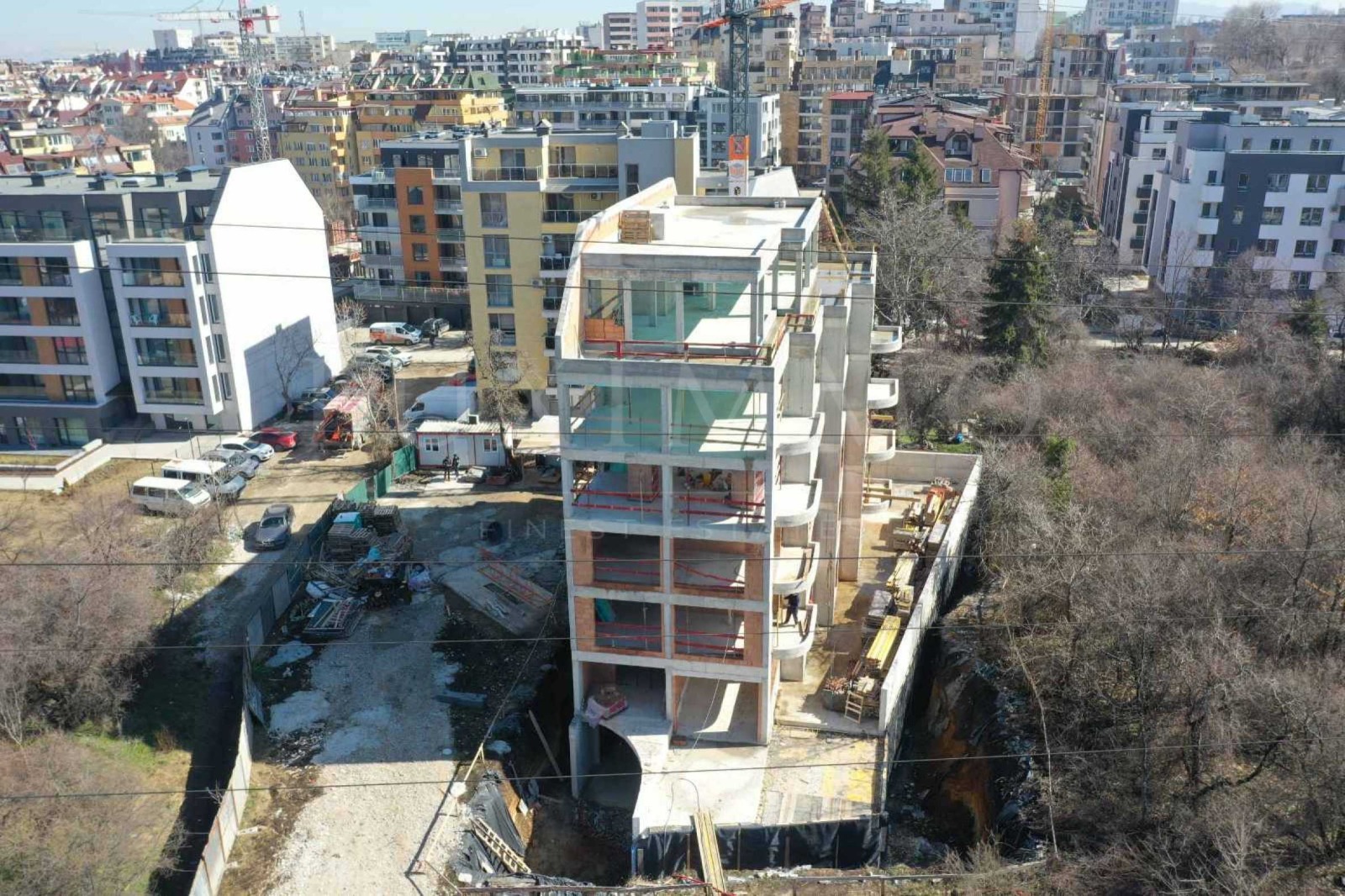Сградата е бутикова, с общо 13 апартамента, магазин на партерно ниво, 7 паркоместа и 8 гаража.