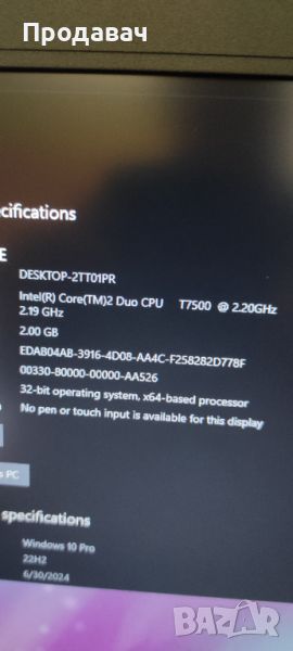 Процесор: Intel® Core™2 Duo T7500-2.20Ghz с 4MB кеш