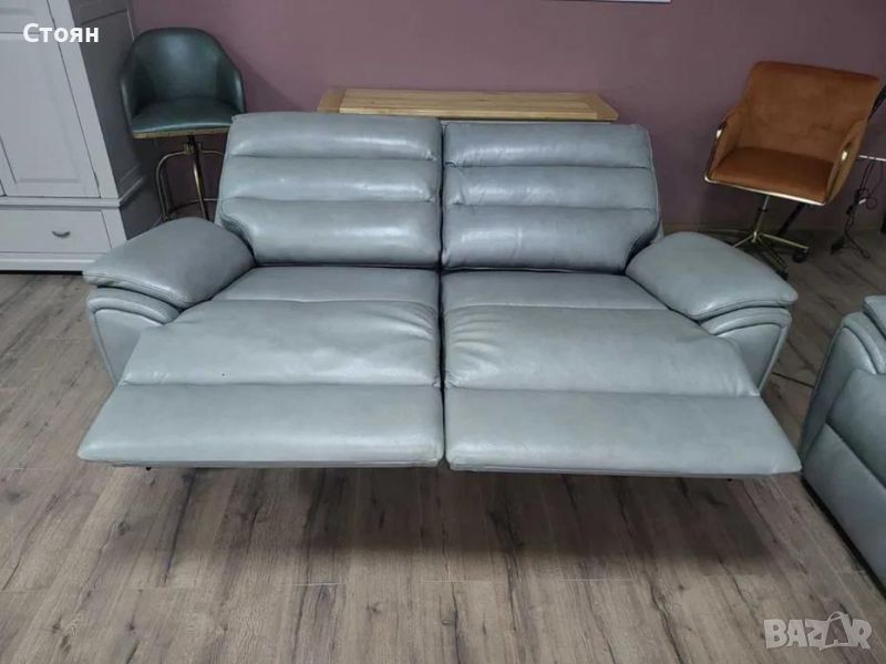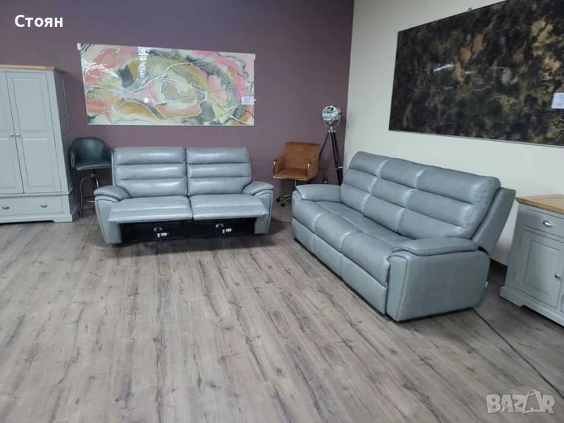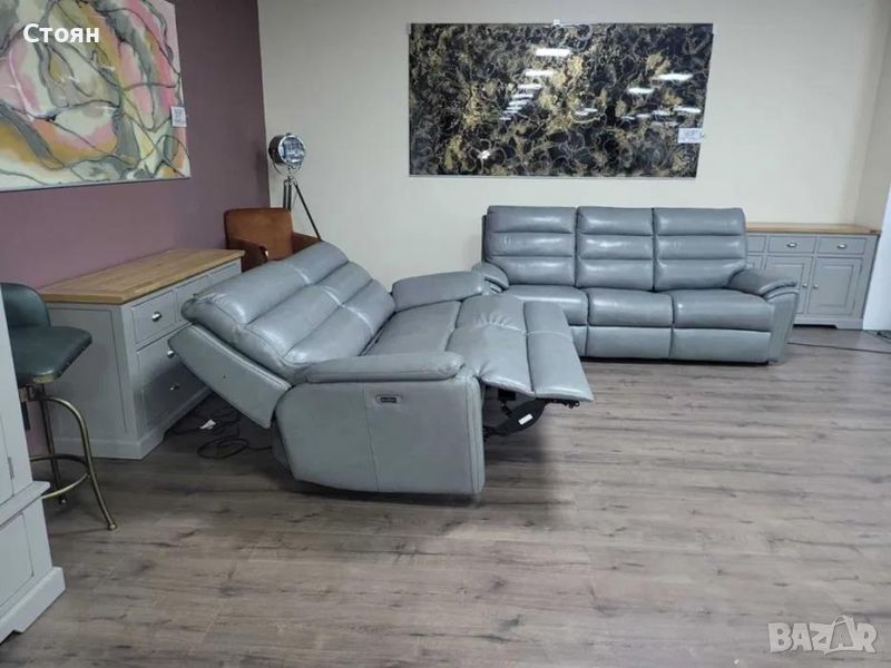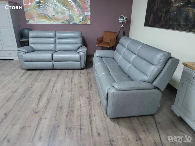 Американски сив кожен комплект тройка и двойка La-z-boy → Обява 46475288