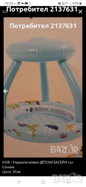 НОВ ! неразпечатван ДЕТСКИ НАДУВАЕМ БАСЕЙН със СЕННИК