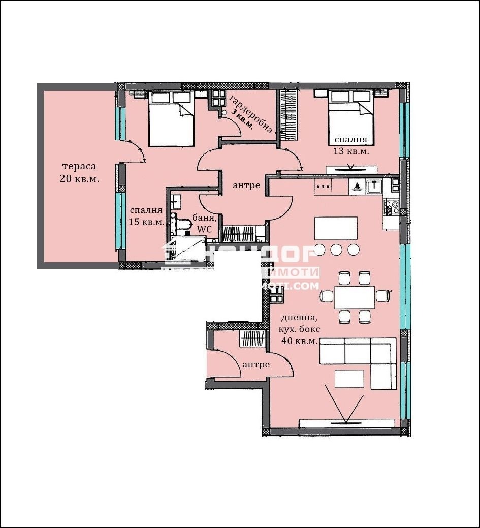 Оферта 54022: ГОТОВА СГРАДА!!! Предлагаме Ви тристаен апартамент с перфектно разпределение в нова модерна сграда със собствен стил с изчистена визия, проектирана така, че да създаде максимален комфорт и уют за живеене. Нискоетажно жилищно строителство, състоящо се от три секции, в съответна близост до новоизграден парк, спортни площадки и места за отдих и почивка. Жилището се състои от просторна дневна - 40 кв.м., обособена на кътове, родителска спалня - 15 кв.м. със собствена гардеробна 3кв.м. с излаз на тераса - 20 кв.м., детска- 13 кв.м., баня с тоалетна и антре. Към апартамента има прилежаща изба, която се закупува допълнително (между 4 и 8кв.м.). Сградата привлича вниманието със своята локация, разположена в близост до Гребна база и парк Отдих и култура, обособили се като едни от най-развиващите се и предпочитани райони за живеене в града. Изпълнението е осъществено с висококачествени материали и съвременни технологии, по европейски стандарт, шесткамерна PVC дограма, блиндирана входна врата с 4-странно заключване, сензорно осветление, хидравлични асансьори с огледална кабина. Проектът включва както жилищна, така и обществено обслужваща дейност, която гарантира удобства от първа необходимост. Възможност за закупуване чрез Банков кредит с изключително изгодни условия за клиенти на агенция 'Кондор'! СВОБОДНИ ПОДЗЕМНИ Паркоместа! Посочената цена е без вкл. ДДС!