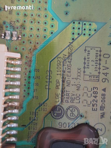 Платка BUFFER Y-DRIVE EAX64286201 EBR73575402 for LG 42PA4500 for 42inc DISPLAY PDP42T40010 борда е гарантирано работещ Демонтиран от телевизор LG модел 42PA4500 със счупен дисплей PDP42T40010 тествана от нашия техник Ремонт на всички марки съвременни телевизори